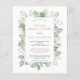 A budget price SMALLER 4.5” x 5.6” alternative. Available in a SEMI-GLOSS 110 lb CARD STOCK which is the default option (thicker for invitations), OR a SATIN FINISH 80 lb THINNER PAPER STOCK (ideal for enclosures). Envelopes are an optional extra and are slightly larger than the card size. For times when you can't be together in person, a virtual bridal shower is a good alternative. This modern design has a border of elegant watercolor sage green and gold foliage, around the stylish simplistic typography which you can easily personalise. You can also change text and background colours on either side if you wish via the Customise Further option.