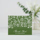 These green flat thank you notes are an excellent value printed on 110 lb paper and feature a white leaf pattern, the words "Thank You" and your name in chic white lettering. Perfect thank you notes for your wedding, bridal shower, baby shower, birthday, anniversary, graduation, Christmas holiday or any special event. WHITE envelopes are optional. Measures 4.5" x 5.6", but you can choose from 3 paper sizes. MORE COLORS in our collection.