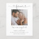 Budget Forever Has A Nice Ring To It Photo Engagement Announcement. A budget price SMALLER 4.5” x 5.6” alternative. Available in a SEMI-GLOSS 110 lb CARD STOCK which is the default option (thicker for invitations), OR a SATIN FINISH 80 lb THINNER PAPER STOCK (ideal for enclosures). A modern design to announce your exciting news, with an elegant style set script for Forever with heart and engagement ring swashes and Has a Ring To It in the same set script beneath your photo. Replace the sample image with your photo which is in square format and the rest of the text you can easily personalise.