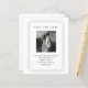 Design features clean and classic black and white design which makes it minimalist and elegant. It features a simple double-line border with round corner details that frame the layout. There is also a photo at the centre that the couple can personalised. The mix of script and serif fonts are like traditional calligraphy, but with a modern twist. A great choice for couples who love minimalist style with a hint of vintage charm.