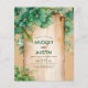 This affordable vintage rustic St. Patrick's Day wedding invitation showcases a charming vintage frame adorned with vibrant greenery and a unique QR code for online RSVP. The wooden frame is beautifully embellished with lush greenery, elegantly placed on three corners, creating a visually stunning design. Although it deviates from the traditional clover motif, the invitation exudes elegance with its Celtic font and abundant greenery, making it a perfect choice for a memorable St. Patrick's Day wedding celebration.