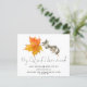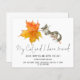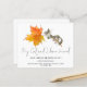 Fun My Cat I have Moved Script New Home. A budget price SMALLER 4.5” x 5.6” alternative. Available in a SEMI GLOSS 110 lb CARD STOCK which is the default option (recommended for invitations, similar to the thickness of a postcard), OR a SATIN FINISH 80 lb THINNER PAPER STOCK (ideal for enclosures). Envelopes are an optional extra and are slightly larger than the card size. Trendy handwriting style set script is My Cat And I Have Moved, and cute cat clinging on to an autumn leaf illustration. Easily personalise the rest of the text at the bottom with your details.