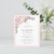 Elegant celebration of a life invitation features a pink rose floral arrangement. The deceased person's name is written in a traditional script text. All of the text can be easily edited to create a personal remembrance.