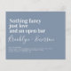 Invite friends and family to join you for your wedding celebrations with this funny wedding invitation. The text reads "Nothing fancy just love and an open bar"
