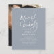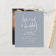 This budget bridal shower invitation features chic calligraphy, modern typography, and a custom photo. We have chosen this modern dusty blue and white combination as it is one of our favorite wedding colors! A light and peaceful color scheme, perfect for spring showers. At the top of the card, "brunch + bubbly" is handwritten in a modern lettering style, with the bride's name below in sans-serif capitals. A line divider is separating it from the rest of the event information. The celebration details are in a trendy combination of serif lowercase and capitals. The venue is all in lower case. The back of the cards features a full-bleed photo of your choice. In white, "future mrs" is in signature-style script lettering and the surname is underneath. This makes the invitation a beautiful keepsake to be showcased on fridges, mantelpieces, bookshelves, coffee tables, or photo boards! Easily edit the wording to be unique to your event. More color variations are available in our store, or you can choose your own color to set the tone for your wedding. As part of the budget selection on Zazzle, this sheet isn't a standard invite size or paper quality. If you want this design on an invitation card you can find it in our store or use the Zazzle Make Machine to transfer it onto the product of your choice. Feel free to message me with any questions, I'll be happy to help!
