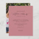 Future Mrs Photo Bridal Shower Dusty Rose Pink Thanks. A budget price SMALLER 4.5” x 5.6” alternative. Available in a SEMI GLOSS 110 lb CARD STOCK which is the default option (recommended for invitations), OR a SATIN FINISH 80 lb THINNER PAPER STOCK (ideal for enclosures). Envelopes are an optional extra and are slightly larger than the card size. The Future Mrs is in a playful artsy set script with ring and heart motifs and the rest of the text you can easily personalise. Replace the sample photo on the back with a fun picture from your event.