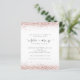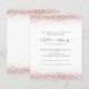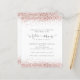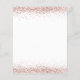 Future Mrs Rose Gold Glitter Bridal Shower invitation. A budget price SMALLER 4.5” x 5.6” alternative. Available in a SEMI GLOSS 110 lb CARD STOCK which is the default option (recommended for invitations), OR a SATIN FINISH 80 lb THINNER PAPER STOCK (ideal for enclosures). Envelopes are an optional extra and are slightly larger than the card size. The Future Mrs is in an artsy set script with ring and heart motifs and the rest of the text you can easily personalise. The top and bottom edges on both sides are bordered with glitter in rose gold.