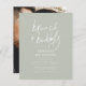 Modern and budget bridal shower invitation with casual hand-lettering, elegant typography, and a custom photo. We have chosen this modern sage green and white combination as it is one of our favourite wedding colours! Perfect for spring or summer events, floral or botanical themes. At the top of the card, "brunch + bubbly" is handwritten in a signature lettering style, with the bride's name below in sans-serif capitals. A line divider is separating it from the rest of the event information. The celebration details are in a trendy combination of serif lowercase and capitals. The venue is all in lower case. The back of the cards features a full-bleed photo of your choice. In white, "future mrs" is in signature-style script lettering and the surname is underneath. This makes the invitation a beautiful keepsake to be showcased on fridges, mantelpieces, bookshelves, coffee tables, or photo boards! Easily edit the wording to be unique to your event. More colour variations are available in our store, or you can choose your own to feature your wedding colours. As part of the budget selection on Zazzle, this sheet isn't a standard invite size or paper quality. If you want this design on an invitation card you can find it in our store or use the Zazzle Make Machine to transfer it onto the product of your choice. Feel free to message me with any questions, I'll be happy to help!