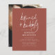 Budget & minimalist bridal shower invitation with signature-style hand-lettering, elegant typography, and a custom photo. We have chosen this boho terracotta and white combination as it is one of our favourites! Perfect for spring, summer, or fall events. Matching with floral, botanical, country, barn, or bohemian themes. At the top of the card, "brunch + bubbly" is handwritten in a signature lettering style, with the bride's name below in sans-serif capitals. A line divider is separating it from the rest of the event information. The celebration details are in a trendy combination of serif lowercase and capitals. The venue is all in lower case. The back of the cards features a full-bleed photo of your choice. In white, "future mrs" is in signature-style script lettering and the surname is underneath. This makes the invitation a beautiful keepsake to be showcased on fridges, mantelpieces, bookshelves, coffee tables, or photo boards! Easily edit the wording to be unique to your event. More colour variations are available in our store, or you can choose your own to feature your wedding colours. As part of the budget selection on Zazzle, this sheet isn't a standard invite size or paper quality. If you want this design on an invitation card you can find it in our store or use the Zazzle Make Machine to transfer it onto the product of your choice. Feel free to message me with any questions, I'll be happy to help!