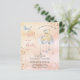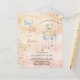 For a gender reveal baby shower. A rustic golden and blush pink background. A teddy bear with white, blue and pink balloons and golden glitter dust. Personalise and add the name of the mum to-be and party details.