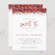 Budget Girly Red Glitter Sweet 16 Invitation. A budget price SMALLER 4.5” x 5.6” alternative. Available in a SEMI GLOSS 110 lb CARD STOCK which is the default option (recommended for invitations), OR a SATIN FINISH 80 lb THINNER PAPER STOCK (ideal for enclosures). Faux red glitter borders the top on each side, and sweet 16 is in a set handwriting style script. Easily personalise the rest of the text to your own details. You can also change the text and background colours via the customise further option if you wish.