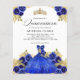 Glam Blue Dress Floral Watercolor 15th Quinceañera Invitation