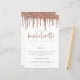 Budget Rose Gold Glitter Drip Bachelorette Weekend Invite. A LARGER size 5.5” x 8.5” at a budget price, on a SEMI GLOSS 110 lb CARD STOCK, great for invitations, at roughly the same thickness as a postcard, or an elegant 110 lb LINEN stock – for a luxury, slightly thinner feel at great value. PLEASE NOTE THE OPTIONAL ENVELOPES ARE A LITTLE BIGGER IN SIZE AT 6.75” x 9” approx. This budget size alternative is also available in other paper choices. The FELT 100 lbs paper is buff coloured, NOT white, so adds a rustic touch. The MATTE 80lbs paper stock is bright white, for crisp printing, great for your menus and programs, whilst the SATIN 80lbs paper is thin and light, ideal for enclosures. The main header Hen Party is in a rose pink set script typography and the rest of the text you can easily personalise, as well as your itinerary details on the reverse.