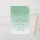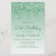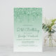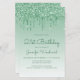 This trendy 21st birthday invitation features a sparkly green faux glitter drip border and green ombre background. The words "21st Birthday" and the name of the guest of honour appear in casual green handwriting script, with the rest of the customisable text in green sans serif font. The same green glitter drip design appears on the reverse side.