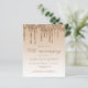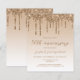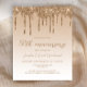 This trendy 50th wedding anniversary party invitation features a sparkly gold faux glitter drip border and ombre background. The words "50th Anniversary" and the names of the couple appear in whimsical gold-coloured script, with the rest of the customisable text in gold-coloured sans serif font. The same gold glitter drip design appears on the reverse side.