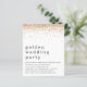 Glitter Golden Wedding 50 years Anniversary Party Invite. A budget price SMALLER 4.5” x 5.6” alternative. Available in a SEMI GLOSS 110 lb CARD STOCK which is the default option (recommended for invitations), OR a SATIN FINISH 80 lb THINNER PAPER STOCK (ideal for enclosures). Envelopes are an optional extra and are slightly larger than the card size. The header is large in stylish lowercase with the details beneath. Lots of white space at the top for a contemporary feel and a border of gold faux glitter on each side. Easily personalise the text to your own details.