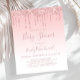 This trendy baby shower invitation features a border of sparkly pink dripping faux glitter on a pink ombre background. The words "Baby Shower" and the name of the mum-to-be appear in rose pink handwriting script, with the remaining text in sans serif font.