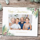 This stylish budget Christmas Card is decorated with festive watercolor foliage and berries in red, green, and gold.