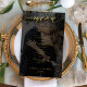 Simple dark custom photo overlay black and gold trendy minimalist chic calligraphy script custom text template BUDGET affordable wedding menu card.