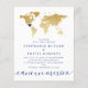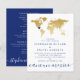 Chic faux gold world map with a moveable heart so you can create an elegant navy blue, gold, and white travel theme invitation for a local reception or destination wedding.