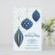 Budget Gold Blue Ornaments Christmas Invitations