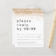 Gold Glitter Confetti Script Wedding RSVP. A budget price SMALLER 4.5” x 5.6” alternative. Available in a SEMI GLOSS 110 lb CARD STOCK which is the default option (recommended for invitations), OR a SATIN FINISH 80 lb THINNER PAPER STOCK (ideal for enclosures). Envelopes are an optional extra and are slightly larger than the card size. The header is large below in stylish lowercase with the details at the bottom with a gold faux glitter border at the top on each side. Easily personalise the text to your own details.
