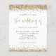 A value for money BUDGET alternative on a smaller size 4.5 x 5.6” semi-gloss 110lbs weight, which is of similar thickness to a postcard (however is not suitable to use as a postcard.). PLEASE NOTE there is ONE invite per sheet. Gold Glitter Confetti Borders Wedding. An elegant set typography is in gold for the main heading the Wedding Of complementing the rest of the text which you can easily personalise, with gold faux glitter confetti borders at the top and bottom and also on the back.