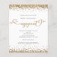 A value for money BUDGET alternative on a smaller size 4.5 x 5.6” semi-gloss 110lbs weight, which is of similar thickness to a postcard (however is not suitable to use as a postcard.). PLEASE NOTE there is ONE invite per sheet. Gold Glitter Heart Script Engagement Invite. Elegant gold faux glitter confetti borders are at the top and bottom and also on the back. Engagement is set in an elegant script with romantic heart swashes either end. Easily personalise the rest of the text to your own.