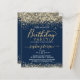 Budget Gold Glitter Navy Blue Birthday Invitation