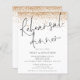 A budget price SMALLER 4.5” x 5.6” alternative. Available in a SEMI-GLOSS 110 lb CARD STOCK which is the default option (thicker for invitations), OR a SATIN FINISH 80 lb THINNER PAPER STOCK (ideal for enclosures). Envelopes are an optional extra and are slightly larger than the card size, This modern design has elegant informal set script for Rehearsal Dinner and a border of gold faux glitter at the top on each side. The rest of the typography you can easily personalise. You can also change text and background colours on either side if you wish via the Customise Further option.