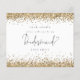 Budget Gold Glitter Script Bridesmaid Request. A budget price 4.5” x 5.6” alternative. Available in a SEMI GLOSS 110 lb CARD STOCK which is the default option (thicker for invitations) Bridesmaid is in a stylish set script is in the centre. A border of faux glitter in gold is at the top and bottom on each side.