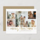 Modern Gold Merry Christmas Heart Script 5 Photo Holiday Card