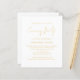 A value for money BUDGET alternative on a smaller size 4.5 x 5.6” semi-gloss 110lbs weight, which is of similar thickness to a postcard (however is not suitable to use as a postcard.). PLEASE NOTE there is ONE per sheet. Budget Gold Script QR Evening Party Wedding Invitation. Add your QR code to your wedding website on the back so your guests can RSVP and see all the details online without the need for separate enclosures. Set typography in gold for the main heading Evening Party complementing the rest of the text which you can easily personalise.