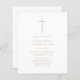 Budget Minimalist Gold Text and Cross First Holy Communion. A budget priced smaller 4.5 x 5.6” 110lbs semi-gloss, similar in thickness to a postcard. There is ONE per sheet. Simple elegance for this special time for your daughter or son. Easily personalise the words to your own. You can change text and background Colours if you wish via the edit further option.