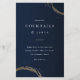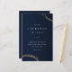 An elegant cocktail party invitation design by Stacey Meacham featuring deep blue textural background and gold cocktail rings. Perfect for business or personal events.