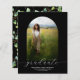 Our more affordable Boho Arch Graduation Announcement features a Boho Arch, and a beautiful Ivy pattern on the back. Personalised with your details and photo, this minimalist, classic design will beautifully highlight this amazing milestone in your life. We love the black background with white handwritten script typography, but be sure to take a look at our other options and accessories in our Graduation Collection.