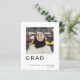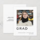 A budget price SMALLER 4.5” x 5.6” alternative. Available in a SEMI-GLOSS 110 lb CARD STOCK which is the default option (thicker for invitations), OR a SATIN FINISH 80 lb THINNER PAPER STOCK (ideal for enclosures). Envelopes are an optional extra and are slightly larger than the card size. This simple contemporary design for your graduation announcement has your photo and details, with black text. Easily personalise the text on each side and replace the photo in the template with your own. A photo cropped to square before uploading will work best so your subject fits correctly in the placeholder. You can also change the text colours and background colours if you wish to better suit your photo via the Customise Further option. If you need any assistance please let me know.