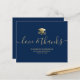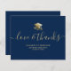 Send a modern custom graduation thank you card to your family and friends featuring an illustration of a gold graduation cap and diploma on the front with a modern script that reads, "Love & Thanks" in faux gold typography with your name, school, and class/year below on a navy blue background. The back of the card has a message you may personalise or delete. Designed by artist ©Susan Coffey.