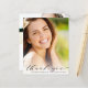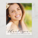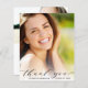 A budget-friendly graduation thank you card featuring the graduate's photo overlayed with "thank you" in a stylish script and their name and class year in modern typography. On the reverse side, add an additional photo, personalise a thank you message and add their name in a signature-like script.