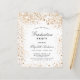 A stylish white background. Decorated with faux gold glitter dust. Personalise and add a name and party details. The name is written with a hand lettered style script