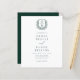 Introduce your wedding with a stunning emerald green invitation featuring an elegant floral crest monogram. The soft sage green hue exudes natural beauty and serenity, while the floral crest adds a timeless, sophisticated touch. Perfect for couples seeking a refined and graceful design, this invitation blends classic charm with modern elegance. The personalised monogram makes it uniquely yours, setting the tone for an unforgettable celebration. Ideal for garden or formal weddings, this invitation beautifully reflects your special day.