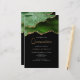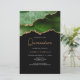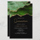 This trendy quinceañera invitation features a watercolor image of an agate geode in shades of green with faux gold highlights. The word "Quinceañera" appears in faux gold glitter in decorative modern handwriting font. Customise it with the name of the guest of honour in gold coloured text and the details in white. The same green agate image appears on the reverse side.