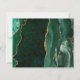 This elegant budget save the date card features an emerald green watercolor agate border trimmed with faux gold glitter. The customisable text combines charcoal grey handwriting script, copperplate and italic fonts on a white background. The reverse side features a matching emerald green and gold agate design.