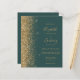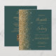 The left-hand edge of this elegant modern wedding invitation features a gold faux glitter border. The customisable text combines gold coloured handwriting, copperplate and italic fonts on a dark green background. The reverse side provides space for wedding details on a solid dark green background, along with a QR code guests can scan to visit your website and RSVP, which saves the cost of printing and mailing separate RSVP cards.