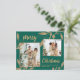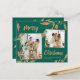 Budget, Elegant, Modern Green and Gold Botanical Leaves 2 Photo Collage Merry Christmas Holiday (thin!) Card. Note: thinner paper than a postcard! This festive, whimsical two (2) photo holiday card template features a pretty photo collage, faux gold foil botanical leaves, winterberries and says Merry Christmas! The „Merry Christmas” greeting text is written in a beautiful hand lettered typography font type on dark forest green, or teal green colour background. On the reverse side one horizontal photo with gold frame and faux gold glitter foil leaves arrangement on green. Great choise for your family and friends in this Christmas and Holiday season. Cheap Holiday cards.
