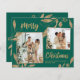 Budget Green Gold Leaves 2 Photo Christmas Card
