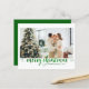 Modern Green Merry Christmas Heart Script Photo Holiday Card