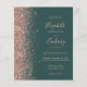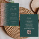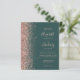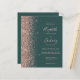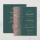 The left-hand edge of this elegant modern wedding invitation features a rose gold faux glitter border. The customisable text combines pale rose gold blush-coloured handwriting, copperplate and italic fonts on a dark emerald green background. The reverse side provides space for wedding details on a solid dark green background, along with a QR code guests can scan to visit your website and RSVP, which saves the cost of printing and mailing separate RSVP cards. NOTE: Envelopes are not automatically included with these budget invitations, so please remember to choose the "white envelopes" option!