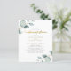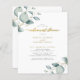 Elegant rustic botanical boho chic beautiful sage green watercolor greenery eucalyptus leaves budget affordable wedding rehearsal dinner invitation with faux gold handwritten calligraphy script.