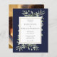 Budget Greenery Navy Blue Wedding Photo Invitation